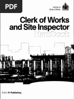 Clerk of Works Site Inspector Handbook. Explains the duties and responsibilities of the clerk of works or site inspector role and consequent liabilities under a standard building contract.